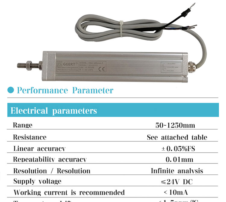 | Brief introduction:The linear displacement sensor based on potentiometer principle is a linear displacement sensor with sliding rheostat structure. The sensor can supply 5V or 10V power, output 0-5V, 0-10V voltage signal, or 12-24V power supply. It is equipped with transmission module to output 0-5V, 0-10V, 4-20mA analog signal, which is convenient to connect with PLC control system for processing and calculation.
